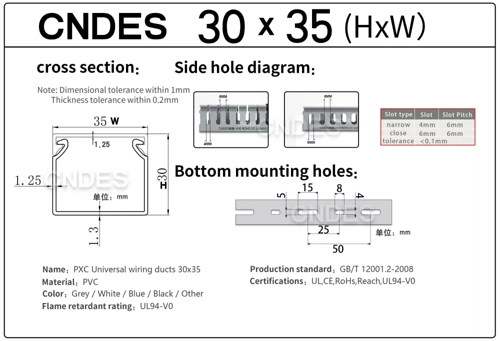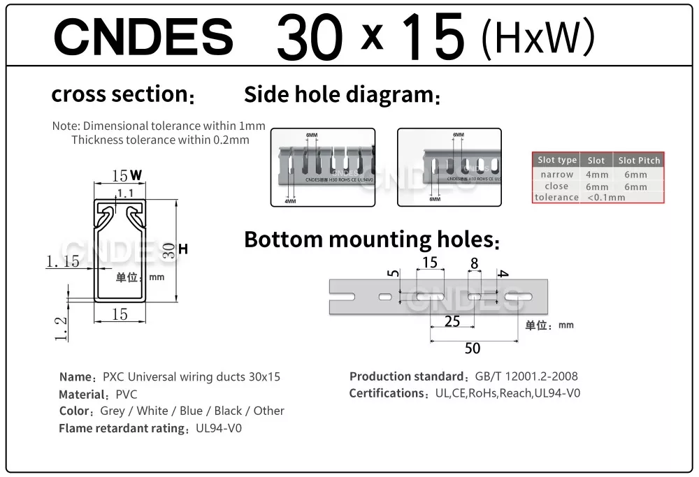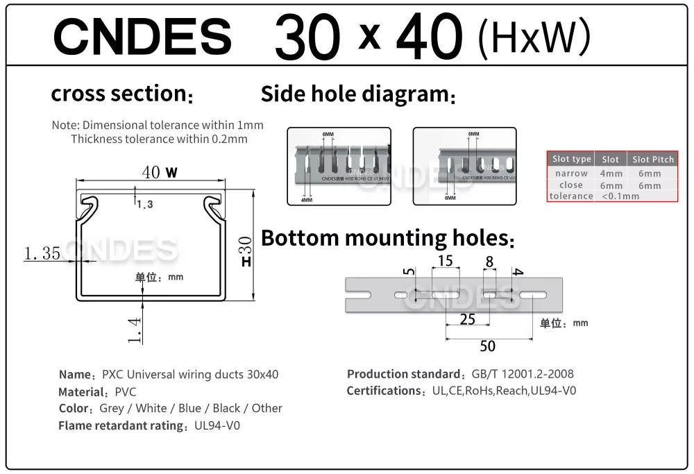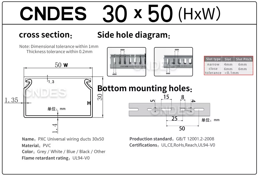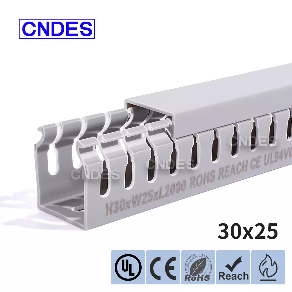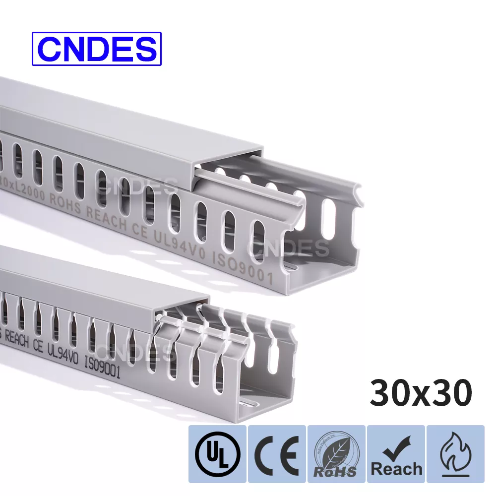 Der maßgeschneiderte, 30 mm hohe, geschlitzte PVC-Kabelführungskanal von CNDES ist für die effiziente, kompakte und sichere Kabelführung in einer Vielzahl von Industrie-, Gewerbe- und Wohnumgebungen konzipiert. Dieser Kanal ist ideal für Anwendungen mit engen Platzverhältnissen und sorgt dafür, dass Ihre Verkabelung organisiert, geschützt und leicht zugänglich ist.