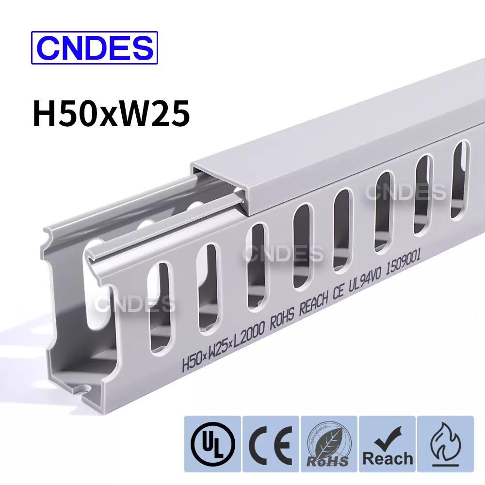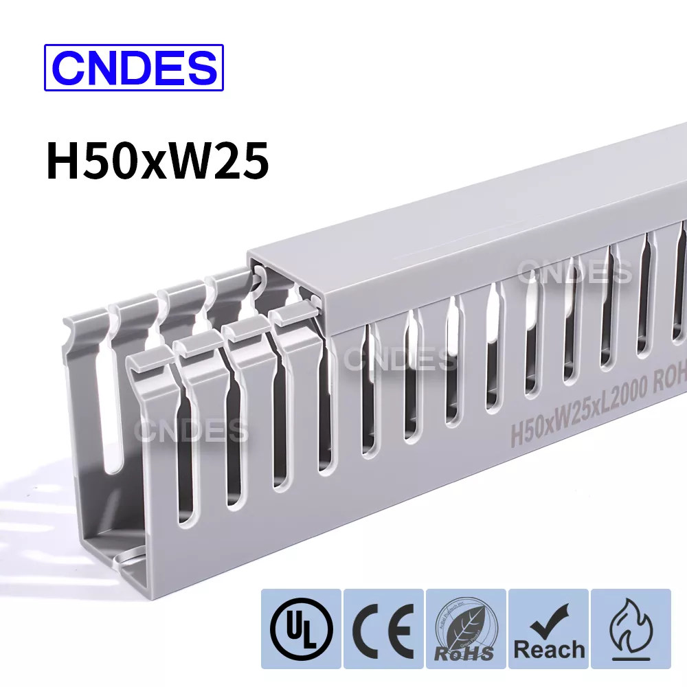 Suchen Sie nach einer einfachen und zuverlässigen Möglichkeit, Kabel in Ihren Schaltschränken oder Industrieschalttafeln zu organisieren? Der maßgeschneiderte 50×25 mm geschlitzte PVC-Schaltschrankkanal von CNDES wurde entwickelt, um Ihre Verkabelung sauber, zugänglich und sicher zu halten.