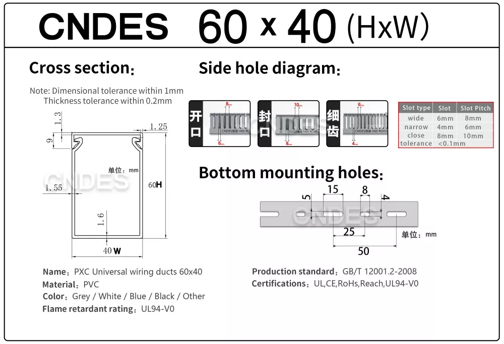 Als erfahrene Fabrik für maßgeschneiderte 60×40 flammhemmende PVC-Kabelkanäle in China stellt CNDES Folgendes sicher: