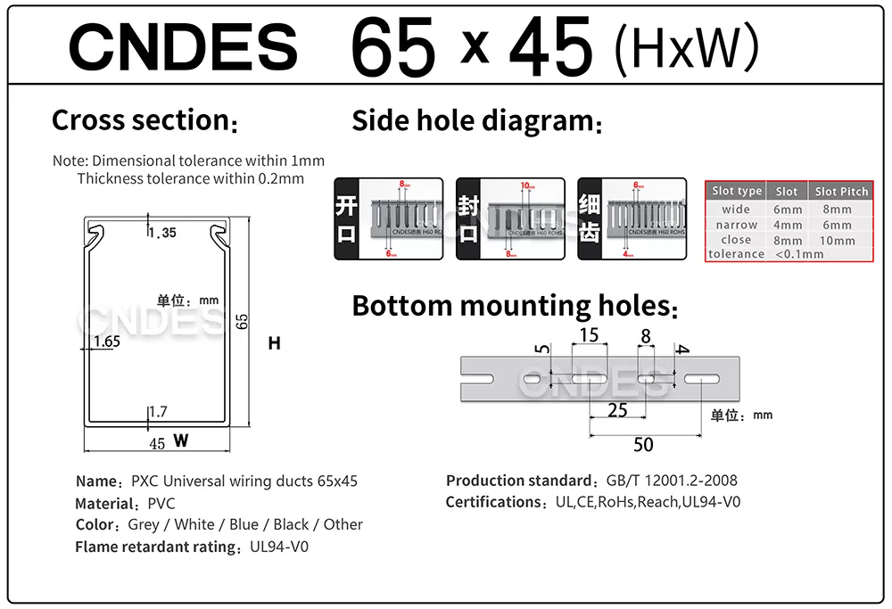 Wenn Sie maßgeschneiderte 65×45 graue geschlitzte PVC-Verkabelungskanäle von einem zuverlässigen Hersteller und Lieferanten in China beziehen, bietet CNDES gleichbleibende Qualität, flexible Anpassung und professionellen Service.
