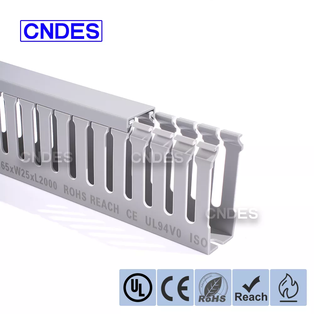 CNDES ist eine Fabrik für PVC-Kabelverkabelungskanäle mit 24 Jahren Erfahrung. Der maßgeschneiderte 65 mm hohe, geschlitzte industrielle Kabelkanal aus PVC ist eine ideale Lösung für die Organisation und den Schutz von Kabeln in Umgebungen mit hoher Dichte, wie z. B. industriellen Schalttafeln, Automatisierungsgeräten und Maschineninstallationen. Mit einer Höhe von 65 mm bietet es ausreichend Platz für die Unterbringung größerer Kabelbündel und gewährleistet gleichzeitig optimalen Schutz vor Umwelteinflüssen wie Staub, Feuchtigkeit und mechanischen Beschädigungen.
