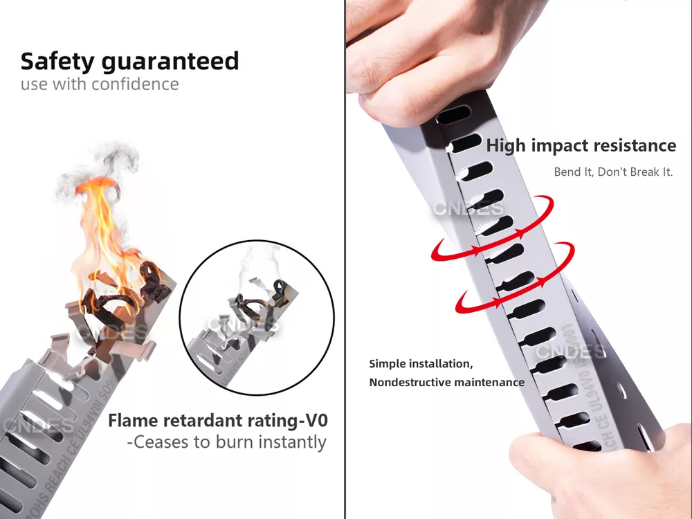 2. Festigkeit in Industriequalität, sicher und zuverlässig: Der hochwertige 80×80-Schlitz-PVC-Schalttafel-Verkabelungskanal besteht aus verdicktem, flammhemmendem PVC-Material (UL94-V0), was ihn robust, langlebig, stoßfest und mit ausgezeichneter Tragfähigkeit macht. Es bietet dauerhaften Schutz für Kabel auch in Vibrationsumgebungen.