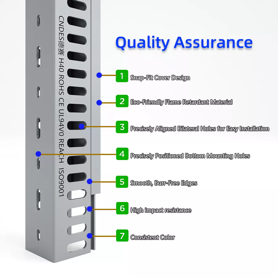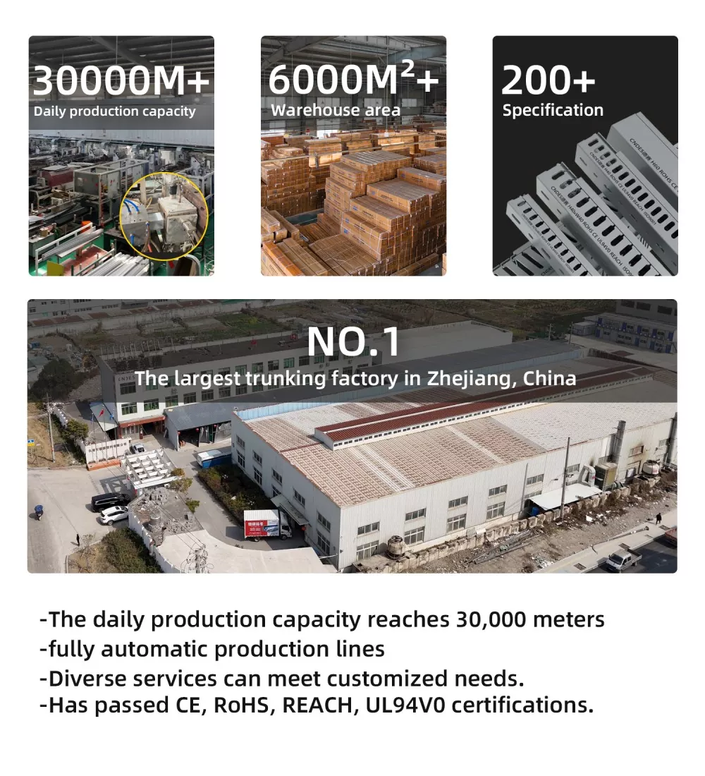 Der Closed-Slot-Drahtkanal von CNDES besteht aus einer proprietären PVC-Formel. Es hat mehrere maßgebliche Zertifizierungen bestanden und verfügt über starke physikalische Eigenschaften und exquisite Verarbeitung. Mit über 60 Spezifikationen auf Lager können Sie beruhigt einkaufen.